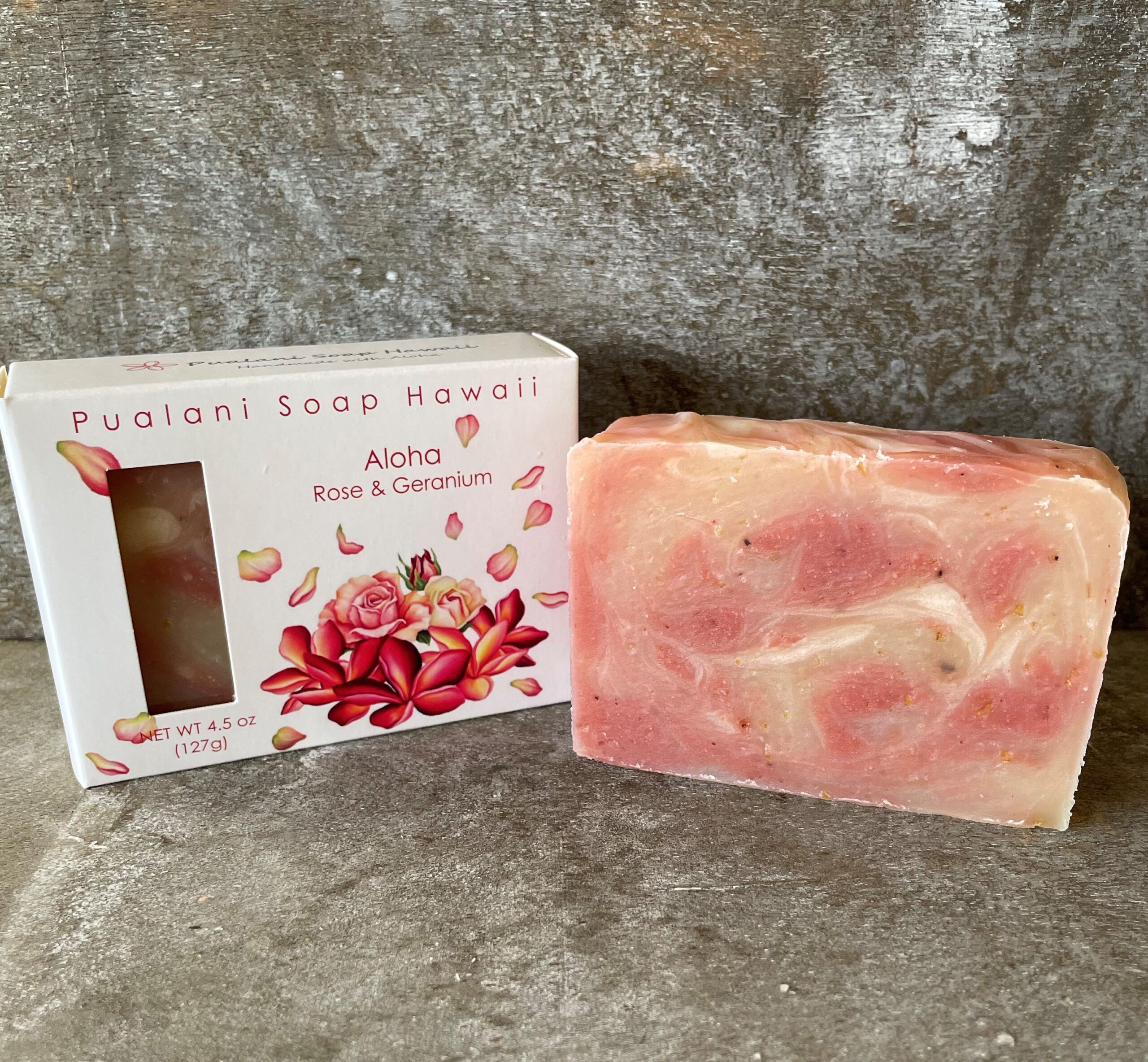 Aloha means love in Hawaiian. Scented with precious Rose Otto and Geranium pure essential oils. This soap is great for face and body, and very mild and conditioning from added ground oatmeal. Gentle cleansing from rose clay, ground oatmeal and rosehip. It is nourishing to your soul mind & whole body. My favorite facial soap.