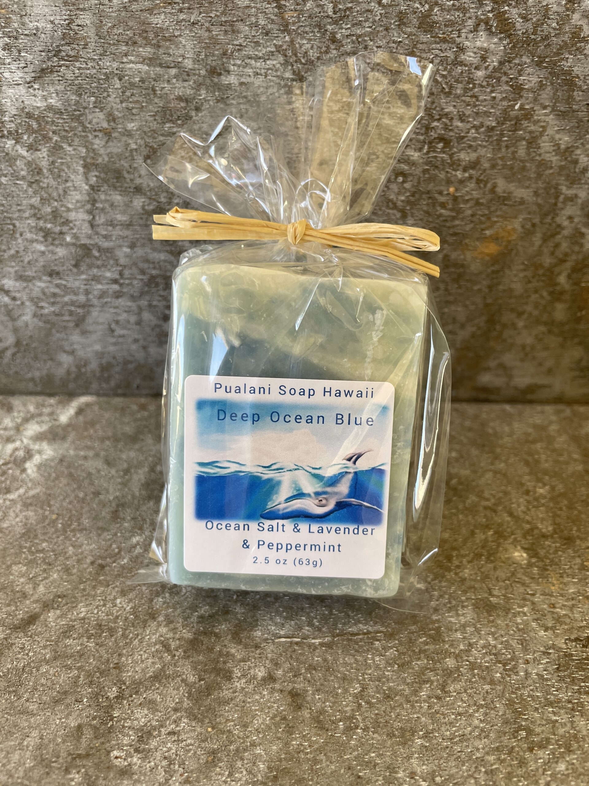 Deep Ocean Blue Soap is made with Hawaiian deep ocean salt from Big Island. It purifies and refreshes your soul mind & body.  The soap has very unique and refreshing scent from pure peppermint and lavender oils. Very popular “Men” soap. Great for face and body. It is also great choice for skin issues such as Eczema.
