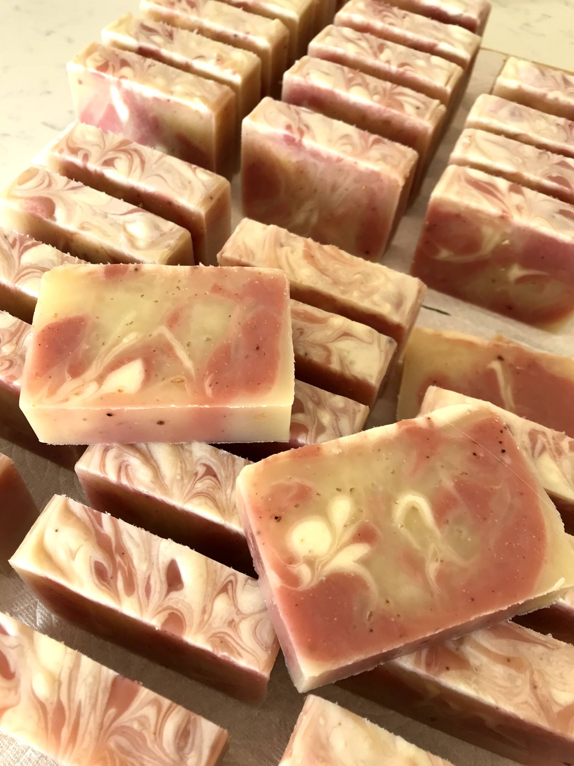 - All of our soaps are “Super-fatted” (add skin nourishing oils at the end of soap making process) for extra moisture and skin nutrition. Naturally created glycerin moisturizes your skin.